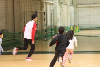 かけっこ教室では「楽しく」練習できるようにさまざまな工夫を行っています。繰り返し練習することにより、正しい身体の動きと体力を身につけます。